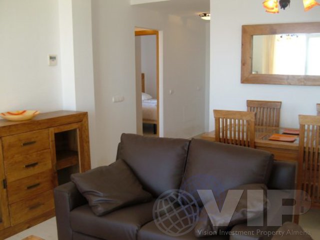 El apartamento tiene 2 dormitorios dobles, 1 baño y 1 cuarto de baño , una cocina moderna totalmente equipada , luminoso y luminoso salón con puertas que dan a la terraza ordenado, con espacio para mesa y sillas , y con vistas a la playa y la calle principal del Paseo que corre a lo largo de Mojácar Playa.