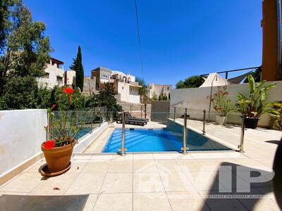 Nestled in the Indalo mountain, Mojacar Playa. We are delighted to offer this delightful, 200m2, three bedroom detached property. It is on an elevated site with spectacular views of the sea and mountains. This is an amazing house with a Moorish architecture style influence. Positioned some 900 metres as the crow flies from the beach. It really is a private oasis as set in 1085m2 gardens with a large tiled swimming pool and a separate garden area on the opposite...