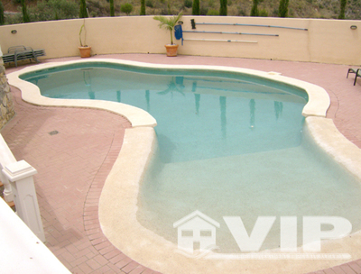 A private driveway winds up to this beautiful detached villa sitting in an elevated position over looking Cortijo Grande in Turre. From the parking area steps lead up to the front door and access into the villa. On the upper floor there is a open plan lounge and dining area with door into recently renovated kitchen with new granite work top and appliances. There is a door from the kitchen out to a rear BBQ terrace and courtyard.
