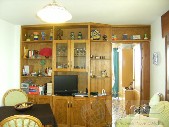 Well presented 36m2 Apartment located in a front Line complex opposite the promenade in the Tourist Strip of Mojacar Playa. Comprising of 36m2 and plenty of storage and ready to move into. The Terrace was enclosed to be of use as a Dining area looking out at the beach and Sea. The Property is in a gated block which has a Telecom entry phone, postbox and Community pool. Excellent Value for Money as a pad or base in Mojacar for long breaks or short stays. Advantages also include the possibility of Self Catering rental in the peak summer rental period per week. Priced to Sell: 59.000 Euros Bargain.